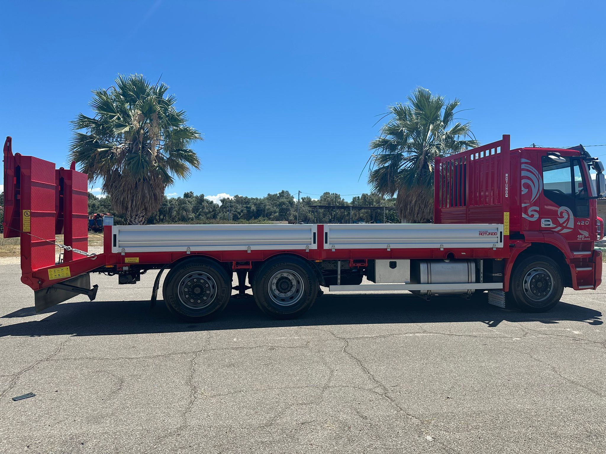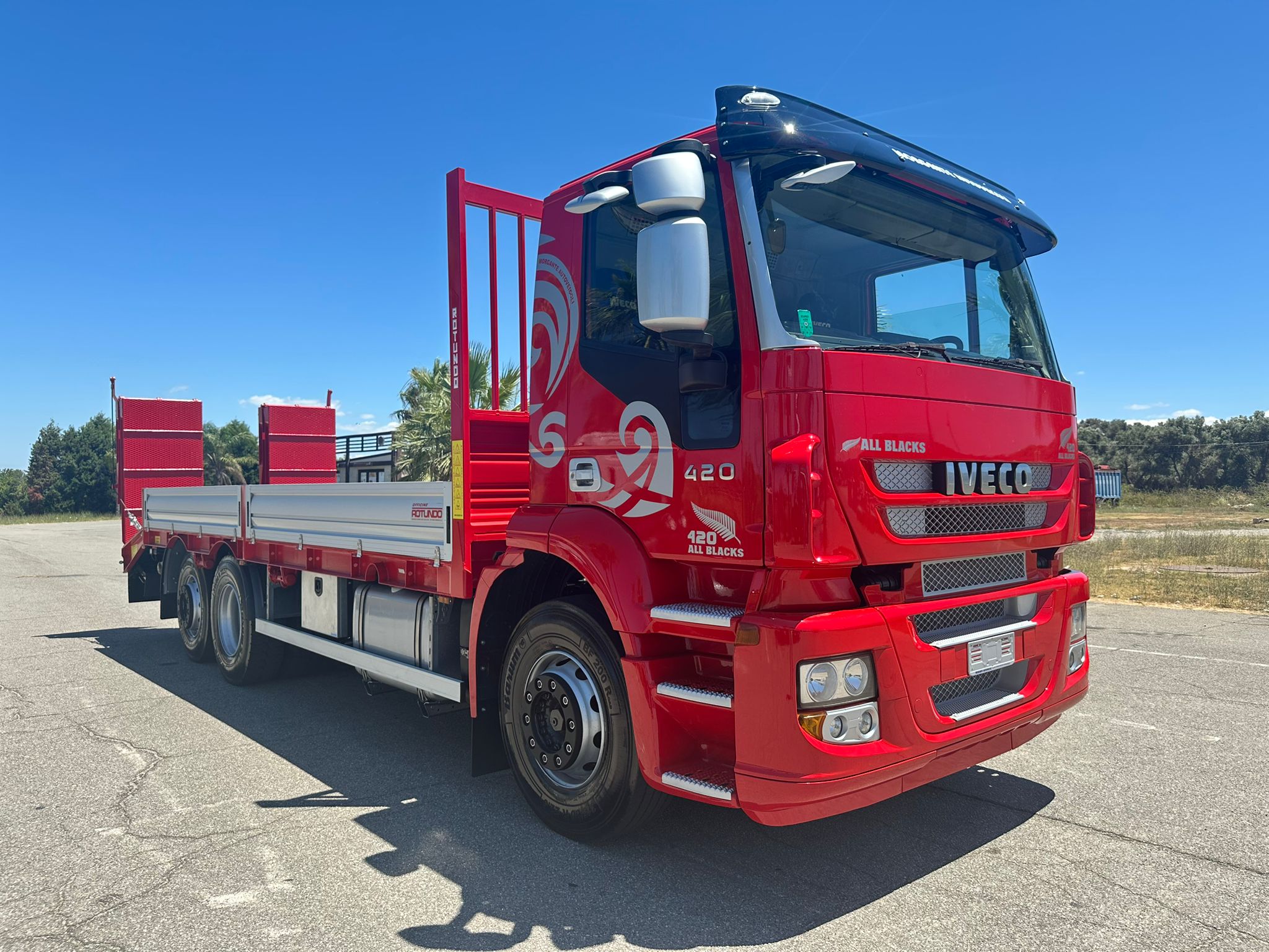 Bellissimo Iveco Stralis 420 motrice 3 assi 6×2 420 cv anno 2008 km 380.000 cabina bassa e corta cambio manuale con ALLESTIMENTO NUOVO DI FABBRICAPianale trasporto macchinari con rampe doppie idrauliche e telecomandodimensioni: metri 6,80+1,10 (coda)x2,50Xh0,40spondine in alluminio rinforzato TR5Possibilità di godere del credito d’imposta 60%ottimo per trasporto macchine operatrici, agricole, piattaforme aeree ecc. portata utile 160 q.li veicolo Full optional PRONTA CONSEGNA